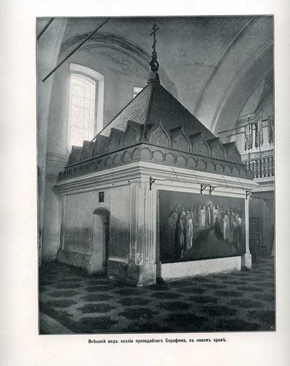 | Keywords: 18. Внешний вид келии преподобного Серафима Саровского внутри нового храма.jpg ru Внешний вид келии п еподобного Се афима Са овского внут и нового х ама 1904 http //andcvet narod ru/arxan/24/sam html не указано other versions Custom license marker 2014 09 24 PD-RusEmpire Uploaded with UploadWizard Album of the Sarov Hermitage views 1904 | ||||