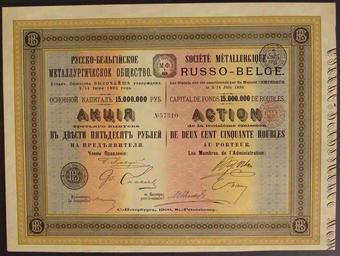 | Keywords: 1900. Акция РБМО.jpg Акция Русско-Бельгийского металлу гического общества http //enr dn ua/ p 3500 1900 Русско-Бельгийское металлу гическое общество PD-RusEmpire Stock certificates of Russian-Belgian metallurgical society Files uploaded by Andrew Butko from various sources |