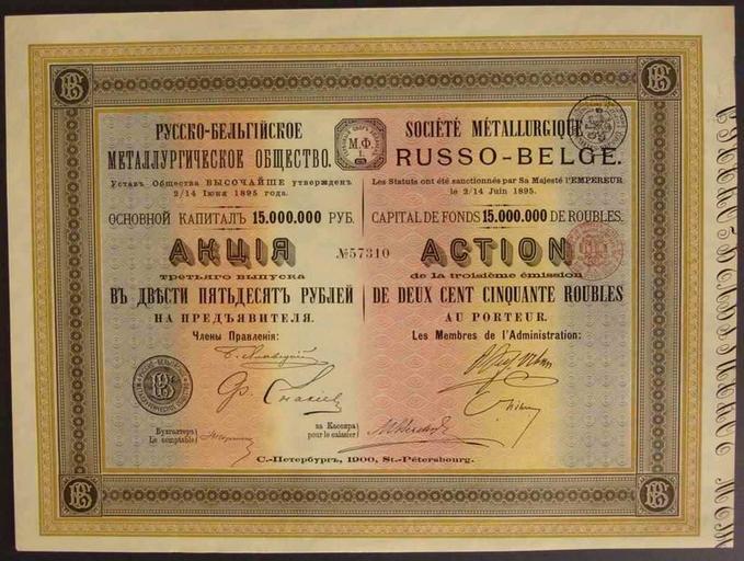 | Keywords: 1900. Акция РБМО.jpg  Акция Русско-Бельгийского металлу гического общества http //enr dn ua/ p 3500 1900 Русско-Бельгийское металлу гическое общество PD-RusEmpire Stock certificates of Russian-Belgian metallurgical society Files uploaded by Andrew Butko from various sources |