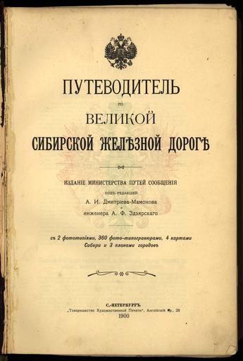 Keywords: Путеводитель по Великой Сибирской железной дороге; Под редакцией А.И.Дмитриева-Мамонова и инженера А.Ф.Здзярского. - Санкт-Петербург : Издание Министерства Путей Сообщения, 1900 Товарищество Художественной Печати. - 606 с., иллюстрации, 7 л. карт, портреты ; 23 см Примечания: Включает в себя 2 фототипии, 360 фото-типогравюр, 4 карты Сибири и 3 плана городов Источник: РНБ - <a href="https://vivaldi.nlr.ru/bx000000452/view" rel="nofollow">vivaldi.nlr.ru/bx000000452/view</a> railway 1900 nlr железнаядорога сибирь российскаянациональнаябиблиотека nationallibraryofrussia российскаяимперия рнб электронныйресурсрнб великийсибирскийпуть