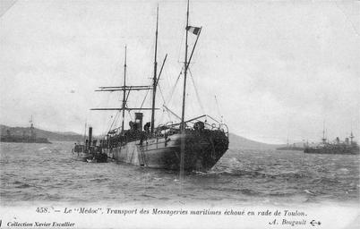 | Keywords: blackandwhite outdoor monochrome black and white MÉDOC : 1884-1914 Deuxième navire du même modèle. Sister ship du CORDOUAN. Pour exploiter la ligne commerciale Marseille-Londres le Cie qui exploitait cette ligne depuis 10 ans et qui était rentable n'avait que des paquebots anciens et de faible port en lourd. Elle commandera aux chantiers de La Ciotat et de La Seyne 4 cargos en acier d'un port en lourd plus élevé pour des dimensions égales. A l'origine ces cargos avaient un coffre qui, à partir de 1886, sera recouvert par un spardeck. Ils sont gréés en 3 mâts-goélettes. Le Cordouan sera le premier livré de la série les suivants sont MÉDOC – MATAPANN et ORTEGAL 1884 le 15 mai Lancement à La Seyne 1884 en août– Livraison par les chantiers de La Seyne. CARACTÉRISTIQUES : Cargos en fer de type 3 îles (gaillard, château central et dunette arrière) avec une cheminée il est gréé en goélette. Son avant est droit. Longueur : 102.97 m HT et 99 m hPP Largeur : 13.85 m Jauge brute : 3695 tjb (Lanfant) – 2998 tjb (Paul Bois) Port en lourd : 4200 t (Lanfant) 4170 t (Paul Bois) Déplacement : 5270 tonnes 1 hélice. 1 cheminée. PROPULSION : Une machine compound à 2 cylindres Chauffe : au charbon Puissance : 1900cv Vitesse : 12,5 nœuds PERSONNEL et PASSAGERS : État-major : 8 Officiers Passagers : 5 (Paul Bois donne 3 passagers et 700 hommes en entrepont) MODIFICATIONS : 1886 le 25 juillet à La Ciotat Installation d'un spardeck sur le coffre, un pont unique uni les trois îles. Gaillard, château et dunette. En vue de leur utilisation sur l'Amérique du Sud. LIGNES : 1884-1887 Premier voyage départ le 29 août, comme prévu sur la ligne de Londres – Le Havre – Marseille 1887-1902 : Mise en service sur la ligne de La Plata 1902 – Affecté à la ligne commerciale d'Indochine – Le 18 décembre inaugure la ligne Londres – Extrême-Orient. ÉVÉNEMENTS : 1901 du 27 au 29 août : Participe avec ATLANTIQUE et le France de la S.G.T.M. aux grandes manœuvres de l'Escadre de l'Ouest. Il embarque chevaux et artillerie à Brest le 27 et les débarque le 29 à La Pallice. 1902 le 18 décembre : Faisant escale à Toulon pour embarquer 223 militaires pour l'Indochine, il est abordé à la sortie du port par le croiseur LATOUCHE-TRÉVILLE. Il ira s'échouer devant le Mourillon. 1914 le 5 octobre : En escale commerciale à Londres dans le Royal Albert Dock, le feu se déclare dans un chargement de balles de jute. Le navire sera complètement détruit. L'épave totalement irrécupérable sera vendue pour la somme de 6.300£ pour la démolition. MÉDOC : 1884-1914 Deuxième navire du même modèle. Sister ship du CORDOUAN. Pour exploiter la ligne commerciale Marseille-Londres le Cie qui exploitait cette ligne depuis 10 ans et qui était rentable n'avait que des paquebots anciens et de faible port en lourd. Elle commandera aux chantiers de La Ciotat et de La Seyne 4 cargos en acier d'un port en lourd plus élevé pour des dimensions égales. A l'origine ces cargos avaient un coffre qui, à partir de 1886, sera recouvert par un spardeck. Ils sont gréés en 3 mâts-goélettes. Le Cordouan sera le premier livré de la série les suivants sont MÉDOC – MATAPANN et ORTEGAL 1884 le 15 mai Lancement à La Seyne 1884 en août– Livraison par les chantiers de La Seyne. CARACTÉRISTIQUES : Cargos en fer de type 3 îles (gaillard, château central et dunette arrière) avec une cheminée il est gréé en goélette. Son avant est droit. Longueur : 102.97 m HT et 99 m hPP Largeur : 13.85 m Jauge brute : 3695 tjb (Lanfant) – 2998 tjb (Paul Bois) Port en lourd : 4200 t (Lanfant) 4170 t (Paul Bois) Déplacement : 5270 tonnes 1 hélice. 1 cheminée. PROPULSION : Une machine compound à 2 cylindres Chauffe : au charbon Puissance : 1900cv Vitesse : 12,5 nœuds PERSONNEL et PASSAGERS : État-major : 8 Officiers Passagers : 5 (Paul Bois donne 3 passagers et 700 hommes en entrepont) MODIFICATIONS : 1886 le 25 juillet à La Ciotat Installation d'un spardeck sur le coffre, un pont unique uni les trois îles. Gaillard, château et dunette. En vue de leur utilisation sur l'Amérique du Sud. LIGNES : 1884-1887 Premier voyage départ le 29 août, comme prévu sur la ligne de Londres – Le Havre – Marseille 1887-1902 : Mise en service sur la ligne de La Plata 1902 – Affecté à la ligne commerciale d'Indochine – Le 18 décembre inaugure la ligne Londres – Extrême-Orient. ÉVÉNEMENTS : 1901 du 27 au 29 août : Participe avec ATLANTIQUE et le France de la S.G.T.M. aux grandes manœuvres de l'Escadre de l'Ouest. Il embarque chevaux et artillerie à Brest le 27 et les débarque le 29 à La Pallice. 1902 le 18 décembre : Faisant escale à Toulon pour embarquer 223 militaires pour l'Indochine, il est abordé à la sortie du port par le croiseur LATOUCHE-TRÉVILLE. Il ira s'échouer devant le Mourillon. 1914 le 5 octobre : En escale commerciale à Londres dans le Royal Albert Dock, le feu se déclare dans un chargement de balles de jute. Le navire sera complètement détruit. L'épave totalement irrécupérable sera vendue pour la somme de 6.300£ pour la démolition. |