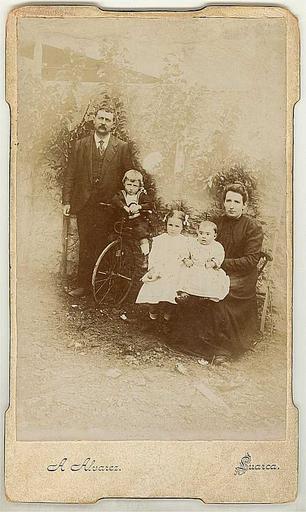 | Keywords: 1902-Concepcion-Garcia-Bravo-y-familia-Rodriguez.jpg it Fotografia che ritrae la famiglia di Maria de la Concepcion Garcia Bravo Menendez de la Vega 1875- sorella di Juan 1870-1914 e Ramon Rodriguez Martinez 1865- con i figli Ulpiano 1898-1974 Teresa 1899- e Elvira 1902-1992 - Fotografo A Alvarez casa central Plazuela de los Molinos 6 Luarca Asturie Spagna archivio Albertomos A Alvarez 1902 nessuna PD-old A Alvarez Luarca People of Spain in 1902 Juan Garcia-Bravo Menendez familia 1902 portrait photographs Group portraits with 5 persons Sepia photographs of people ImageNote 1 383 313 61 79 531 888 2 Maria de la Concepcion Garcia-Bravo y Menendez de la Vega 1875- hermana de Juan casada Rodriguez ImageNoteEnd 1 ImageNote 2 126 178 89 80 531 888 2 Ramon Rodriguez y Martinez 1865- ImageNoteEnd 2 ImageNote 3 209 279 56 76 531 888 2 Ulpiano Rodriguez y Garcia-Bravo 1898-1974 ImageNoteEnd 3 ImageNote 4 268 365 65 61 531 888 2 Teresa Rodriguez y Garcia-Bravo 1899- ImageNoteEnd 4 ImageNote 5 338 380 49 59 531 888 2 Elvira Rodriguez y Garcia-Bravo 1902-1992 ImageNoteEnd 5 |