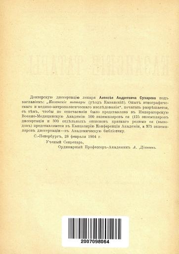 | Keywords: 1904 сухарев а.а. сухареваа казанские татары казанскиетатары казанский уезд казанскийуезд ргб электронный ресурс ргб электронныйресурсргб kazan tatar rsl russian state library russianstatelibrary russian empire russianempire российская империя российскаяимперия диссертация этнография ethnography dissertation text Источник - РГБ: Сухарев, Алексей Андреевич (1861-). Казанские татары : (Уезд Казанский) : Опыт этногр. и мед.-антропол. исслед. : Дис. на степ. д-ра мед. А.А. Сухарева. - Санкт-Петербург : тип. П.П. Сойкина, 1904. - 195 с. : табл.; 22. - (Серия докторских диссертаций, допущенных к защите в Военно-медицинской академии в 1903-1904 учебном году; № 53). Хранение: A 271/45; Хранение: A 291/252; Электронный ресурс dlib.rsl.ru/rsl01003000000/rsl01003725000/rsl01003725012/... Источник - РГБ: Сухарев, Алексей Андреевич (1861-). Казанские татары : (Уезд Казанский) : Опыт этногр. и мед.-антропол. исслед. : Дис. на степ. д-ра мед. А.А. Сухарева. - Санкт-Петербург : тип. П.П. Сойкина, 1904. - 195 с. : табл.; 22. - (Серия докторских диссертаций, допущенных к защите в Военно-медицинской академии в 1903-1904 учебном году; № 53). Хранение: A 271/45; Хранение: A 291/252; Электронный ресурс dlib.rsl.ru/rsl01003000000/rsl01003725000/rsl01003725012/... |
