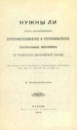 Нужны ли так называемые противомусульманские и противоязыческие епархиальные миссионеры в губерниях Европейской России? : (По поводу отчета Казан. епарх. миссионера. Изв. Каз. еп. N 42-46, за 1904 г.) / [Соч.] Н. Бобровникова. - Казань : Центр. тип., 1905. - 18 с.; 24.