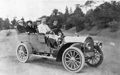 Keywords: blackandwhite monochrome train vehicle bike motorcycle locomotive car outdoor tire rim black and white John and Mrs Gibbs, J B Curran and Miss Curran. Beattie photo John and Mrs Gibbs, J B Curran and Miss Curran. Beattie photo