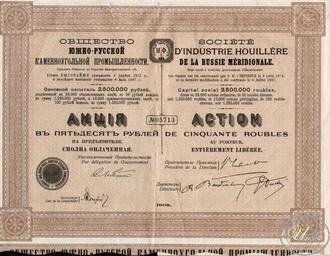 | View Original: | 1909. Акция. Общество Южно-русской каменноугольной промышленностив 50 рублей.jpg (700x543) | |||