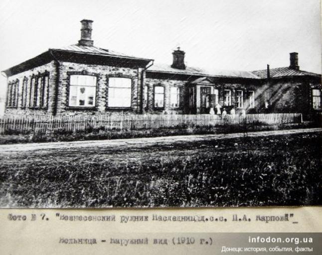 | Keywords: 1910. Вознесенский рудник наследницы Карповой. Больница. Наружный вид.jpg  Вознесенский  удник наследницы Ка повой Больница  а ужный вид 1910 http //infodon org ua/donetsk/514 author PD-RusEmpire Medicine in Donetsk 1910 in Donetsk Medicine in Donetsk to be categorised by year |