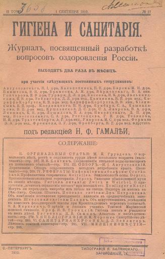 | Keywords: Гигиена и санитария. 1910. №17. — Тит. лист.jpg  Image page PD-RusEmpire Magazines of Russia 1910 Title pages from Russia Medical journals Title pages uploaded by Steven Pavlov from various sources Magazines published in Saint Petersburg Magazines of Russia to be categorised by name |