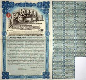 | Keywords: 1910. Облигация, Новороссийское общество, 100 фунтов стерлингов.jpg Облигация ово оссийское общество 100 фунтов сте лингов Share Certificate No 2601 for 100 UK Pounds Sterling - New Russia Company Limited - Printed by Waterlow Sons Limited London England - 6th April 1910 - The Original Share Certificate No 2601 is owned by Dr David E Probert and is in the Probert Family Archives Edwin James Williams - Great Great Grandfather of Dr David E Probert was employed by the New Russia Company Limited in the town of Hughesovka now Donetsk as its Chief Mining Geologist from the 1870s to around 1905 originally printed by Waterlow Sons London UK photographed by Dr David E Probert http //www valentina net/NRC/NRC010 html 1910-04-06 Ди екция ово оссийского общества Directors of the New Russia Company Limited - Signed by Director - Archibald Balfour July 1840 - October 1922 PD-old http //www valentina net/NRC/ Files uploaded by Andrew Butko from various sources 20th century Stock certificates of New Russia Coal Iron and Rail-making Company Historical non-photos images of Donetsk by alphabet 1910 in Donetsk |