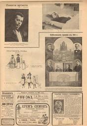 | Keywords: искры журнал 1911 text sketch drawing writing monochrome Памяти артиста. Фот. Р. Бродовского. А. Э. Блюменталь-Тамарин, опереточный артист и антрепренер. † 1 декабря. (См. № 277 «Русск. Слова».) В гробу. Прогресс моды. (Шарж.) Г-жа Х. с дочкой и внучкой в 1901 году. Они же в 1911 году. Нобелевские премии в 1911 г. 1) Морис Метерлинк (литература), 2) проф. университета в Упсале Альвар Гульштранд (медицина), 3) проф. Вильгельм Вит из Вюрцбурга (физика), 4) член голландского госуд. совета Ассер (половина премии мира), 5) г-жа Мария Кюри (химия), 6) писатель Альфред Фрид из Вены (половина премии мира), 7) проект Нобелевского дворца в Стокгольме, 8) главный зал в Нобелевском дворце. Источник: www.odin-fakt.ru/iskry/ Памяти артиста. Фот. Р. Бродовского. А. Э. Блюменталь-Тамарин, опереточный артист и антрепренер. † 1 декабря. (См. № 277 «Русск. Слова».) В гробу. Прогресс моды. (Шарж.) Г-жа Х. с дочкой и внучкой в 1901 году. Они же в 1911 году. Нобелевские премии в 1911 г. 1) Морис Метерлинк (литература), 2) проф. университета в Упсале Альвар Гульштранд (медицина), 3) проф. Вильгельм Вит из Вюрцбурга (физика), 4) член голландского госуд. совета Ассер (половина премии мира), 5) г-жа Мария Кюри (химия), 6) писатель Альфред Фрид из Вены (половина премии мира), 7) проект Нобелевского дворца в Стокгольме, 8) главный зал в Нобелевском дворце. Источник: www.odin-fakt.ru/iskry/ |