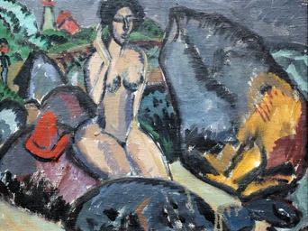 | Keywords: 1912 Kirchner Badende zwischen Steinen anagoria.JPG en Bather between Rocks de Badende zwischen Steinen es Bañistas entre piedras Institution Städel Creator Ernst Ludwig Kirchner 1912 Paintings in the Städel 1912 paintings Paintings of bathers by Ernst Ludwig Kirchner 1910s paintings in the Städel Paintings of nude women sitting on rocks outdoors Files by User anagoria QualityImage 1938 | ||||