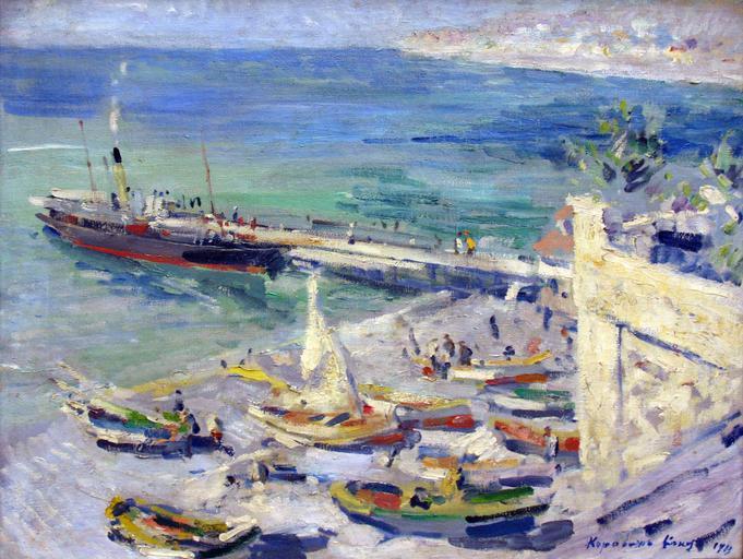 | Keywords: 1913 Korovin Anlegestelle auf der Krim anagoria.JPG en A Quay in the Crimea de Anlegestelle auf der Krim ru абе ежная в К ыму Institution Tretyakov Gallery Creator Konstantin Korovin 1913 20th-century paintings in the Tretyakov Gallery 1913 paintings from Russia Krym by Konstantin Korovin Paintings of ports and harbours PD-old-auto 1939 |