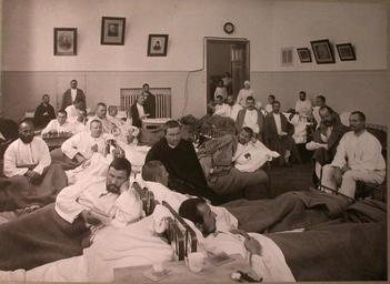 | Keywords: 1914. 18. Раненые в палате лазарета, устроенного в помещении Лепешкинского студенческого общежития.jpg 1914 18 Раненые в палате лаза ета уст оенного в помещении Лепешкинского студенческого общежития jpg 1914 https //fotki yandex ru/users/humus777/album/445619/ not specified PD-RusEmpire Medicine in Russia in 1914 Medicine in Moscow 1914 in Moscow | ||||