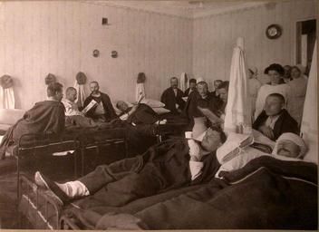 | Keywords: 1914. 22. Раненые в палате лазарета, устроенного Московским и Ярославско-Костромским земельным банком.jpg 1914 22 Раненые в палате лаза ета уст оенного осковским и Я ославско-Кост омским земельным банком jpg 1914 https //fotki yandex ru/users/humus777/album/445791/ not specified PD-RusEmpire Medicine in Russia in 1914 Medicine in Moscow 1914 in Moscow | ||||