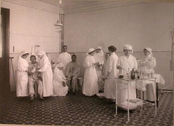 | View Original: | 1914. 27. Медицинские сестры за перевязкой раненых в перевязочной лазарета,устроенного Армянским Благотворительным обществом.jpg (2348x1716) | |||