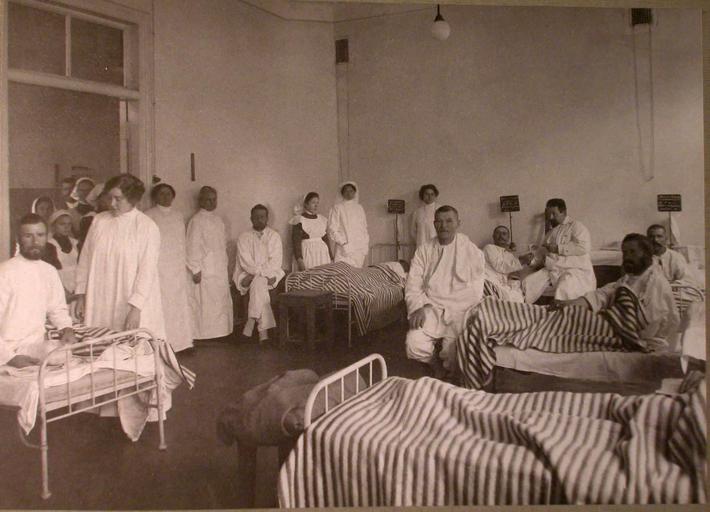 | View Original: | 1914. 27. Раненые и медицинский персонал в палате лазарета Прохоровской мануфактуры.jpg (2392x1724) | |||