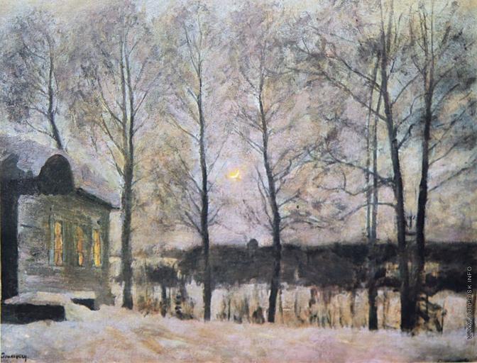 | Keywords: Зимняя лунная ночь. 1915.jpg ru Зимняя лунная ночь Год создания 1915 ате иал Ка тон на фане е масло Разме 64 8 х 91 3 Соб ание ациональный музей Бело уссии инск 1915 http //www artpoisk info/artist/zhukovskiy_stanislav_yulianovich_1873/zimnyaya_lunnaya_noch Creator Stanislav Zhukovsky Custom license marker 2013 03 29 PD-Art Uploaded with UploadWizard 1915 paintings in Belarus 20th-century landscape paintings in the National Arts Museum of the Republic of Belarus Paintings by Stanislav Yulianovich Zhukovsky in the National Arts Museum of the Republic of Belarus |