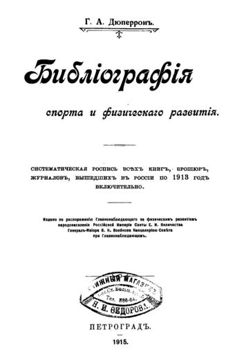 | Keywords: РНБ Дюперрон Г.А., Библиография спорта и физического развития : Сист. роспись всех кн., брош., журн., вышедших в России по 1913 год включ / Г.А. Дюперрон. - Петроград : Канцелярия Сов. при Главнонаблюдающем, 1915. - [4], VIII, 263 с. ; 23 см <a href="https://vivaldi.nlr.ru/bx000010596/view" rel="nofollow">vivaldi.nlr.ru/bx000010596/view</a> рнб библиография спорт дюперрон 1915 sport bibliography nrl nationallibraryofrussia | ||||