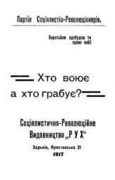 | Keywords: 1917-заливчий-001.jpg  Титульний лист б ошу и Анд ія Заливчого «Хто воює а хто г абує » 1917 Заливчий Анд ій Хто воює а хто г абує  Ха ків Соціялістично-Революц Видавництво «Рух» 1917    14 с 1917 scan by AMY <span class signature-talk ></span> PD-Art Andrii Zalyvchyi |
