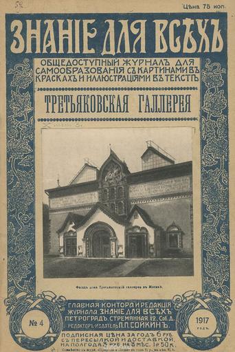 Keywords: Знание для всех. 1917. №04. Третьяковская галерея. — Обложка.jpg Знание для всех 1917 04 Т етьяковская гале ея Обложка http //www baoo ru/product/25901923 Ред -изд П П Сойкин PD-RusEmpire Znaniye dlya vsekh Magazines of Russia 1917 Title pages uploaded by Steven Pavlov from various sources |