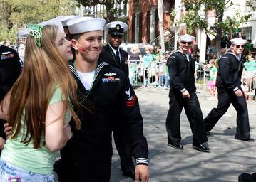 | Keywords: 191st Savannah St. Patrick's Day Parade 150317-N-OS575-184.jpg en 150317-N-OS575-184 SAVANNAH Ga March 17 2015 A Sailor from the guided-missile frigate USS Samuel B Roberts FFG 58 stationed at Naval Station Mayport is kissed by a parade bystander as the ship's crew marches in the 191st Savannah St Patrick's Day Parade in Savannah Ga U S Navy photo by Mass Communication Specialist 2nd Class Sean P La Marr/Released Unit Navy Media Content Services DVIDS Tags NMCS; DVIDS Bulk Import 2015-03-17 Petty Officer 3rd Class Sean La Marr https //www dvidshub net/image/1824975/191st-savannah-st-patricks-day-parade 150317-N-OS575-184 2015-03-20 01 17 SAVANNAH GA US PD-USGov-Military-Navy Naval Station Mayport Images from DoD uploaded by Fæ |