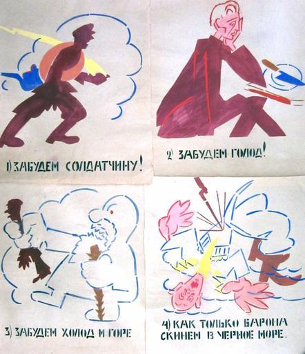 | Keywords: 1920. Забудем солдатчину.jpg  1 Забудем солдатчину 2 Забудем голод 3 Забудем холод и го е 4 Как только ба она скинем в Че ное мо е Издательство РОСТА Се ия Окна РОСТА  426  есто публикации  осква Техника исполнения Т афа ет Разме 108 х 94 Плакат состоит из 4-х панелей каждая панель 54 x 47 Бутник-Сиве ский Б С Советский плакат эпохи г ажданской войны 1918-1921  1960  1145 Ст 258 138 http //www redavantgarde com/ru/shop/goods-3023 html 1920 Creator Vladimir Mayakovsky PD-old-auto 1930 Art works uploaded by Andrew Butko from various sources Okna ROSTA created by Vladimir Mayakovsky Files uploaded by Andrew Butko from various sources 20th century |
