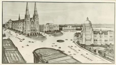 | Keywords: archives state records nsw staterecordsnsw newsouthwales blackandwhite bradfield sketch kent street kentstreet clarence street clarencestreet york street yorkstreet bradfield highway bradfieldhighway monochrome drawing photo border black and white Sketch of the intersection of Bradfield Highway with Kent, Clarence and York Streets (from the Sydney Harbour Bridge albums) Dated: 1/11/0923 Digital ID: 12685_a007_a00704_8735000171r Rights: www.records.nsw.gov.au/about-us/rights-and-permissions We'd love to hear from you if you use our photos/documents. Many other photos in our collection are available to view and browse on our website using Photo Investigator. Sketch of the intersection of Bradfield Highway with Kent, Clarence and York Streets (from the Sydney Harbour Bridge albums) Dated: 1/11/0923 Digital ID: 12685_a007_a00704_8735000171r Rights: www.records.nsw.gov.au/about-us/rights-and-permissions We'd love to hear from you if you use our photos/documents. Many other photos in our collection are available to view and browse on our website using Photo Investigator. |