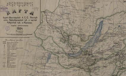 Keywords: Карта Бурят-Монгольской А.С.С. Республики, Забайкальской губ. И частей Иркутской губ. и Монголии. - Иркутск : Издание Бурнаркомзема, 1924. - 1 л. : Литография. 3цв. ; 90х111 (97х116) см см Язык: Русский Примечания: М. 1:2 520 000 <a href="http://leb.nlr.ru/fullpage/44258" rel="nofollow">leb.nlr.ru/fullpage/44258</a> карта маршрут route map сибирь рнб 1924