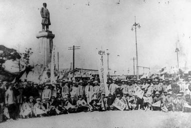 | Keywords: 1924 臺灣議會請願團在東京 Taiwanese Petition Group for Democratically-Elected Assembly in Tokyo 1.jpg zh 為1924年台灣議 請願 抵達 京時,與前來歡迎的台灣留學生合影 <br>http //nrch cca gov tw/ccahome/search/search_meta jsp xml_id 0002294421 dofile getImage jsp d 1320770960951 id 0002298038 filename cca1100038-hp-tcc0197605-0001-i jpg<br> 二四年六 廿 日,第五回台灣議 設置請願代表抵達 京車站,二百餘名台灣 年 員手持寫 尊重民意 自由平等 民族自決 的小旗子,高唱 議 設置請願歌 歡迎代表 ,並搭乘 部汽車遊行市 Siòng-phìnn sī it kiú jī sù nî Tâi-uân Gī-huē tshíng-guān-thuân kàu Tang-kiann ê sî-tsūn in kah lâi gîng-tsiap ê Tâi-uân liû-ha̍k-sing tsò-hué hip-siōng 相片是1924年臺灣議 請願 到 京的時陣, 佮來迎接的臺灣留學生做伙翕相 2011-06-01 http //taiwanpedia culture tw/web/content ID 3733 台灣史100件大事 ,玉山社,1999年 林政光 PD-Japan-oldphoto Demonstrations and protests in Japan in 1924 Uploaded with UploadWizard Taiwan Parliament Petition League Movement |