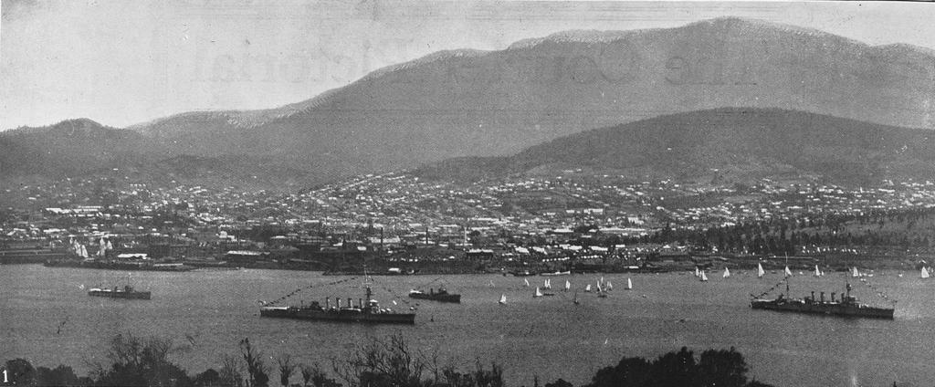 | Keywords: ship boat warship hobart harbour derwent tasmania blackandwhite monochrome outdoor landscape hill mountainside black and white Hobart Regatta with HMAS Sydney, right, Adelaide, centre, Tasmania, rear, Swordsman, left. Beattie photo Hobart Regatta with HMAS Sydney, right, Adelaide, centre, Tasmania, rear, Swordsman, left. Beattie photo |