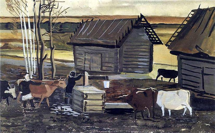 View Original:1934_Осень._Водопой._Б.,_акв.,_гуашь._29х48_ЧС_(Курск_q).jpg (950x589)