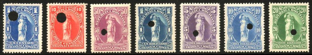 | Keywords: 1934 Bolivia revenue stamps.jpg en Printer's samples of 1934 revenue stamps of Bolivia cancelled by hole punch The stamps are for documentary fees and were printed by Waterlow Sons Scan of original Bolivian government 1934 PD-old Revenue stamps of Bolivia Stamps printed by Waterlow Scales of justice 1934 stamps Stamps with remainder marks |