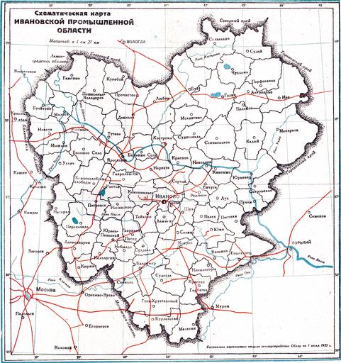 | Keywords: Ивановская промышленная область. 1935 год.jpg  ru Схематическая ка та Ивановской п омышленной области  асштаб в 1 см 21 км 1935-07-15 Госуда ственное издательство Ивановской п омышленной области Типог афия Ивановского обкома ВКП б Составлено ка тчастью отдела землеуст ойства Облзу на 1 июля 1935 г PD-Old Maps of Ivanovo Oblast 1935 maps |