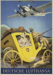 | Keywords: 1936 circa Max Ullmann Plakat für die Deutsche Lufthansa, Junkers Ju 52 über einer Postkutsche.jpg 1936 entstandenes Vielfarb-Plakat Druckvermerk Werbung 20d/I 37 BTL für die Deutsche Lufthansa nach einem Entwurf von Max Ullmann Ein dreimotoriges Flugzeug Typ Junkers Ju 52 Spitzname žTante Ju hier zur Zeit des Nationalsozialismis mit Hakenkreuz fliegt über einer altmodischen Postkutsche in voller Fahrt aus der sich eine offenherzige Dame bewundernd herausbeugt den Blick erfreut nach oben gerichtet http //www plakatkontor de/ivpda-poster-show/ullmann-m-deutsche-lufthansa---junkers-ju-52 html 1936 Max Ullmann PD-old Junkers Ju 52 1936 posters 1936 works in Germany Max Ullmann Verleger 1936 in aviation in Germany Lufthansa Stagecoaches in art Swastikas in advertising Aviation advertising posters |
