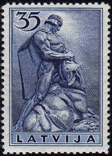 Keywords: 19370712 35sant Latvia Postage Stamp.jpg en Postage stamp issued by Latvia 1937 depicting fragment view of monument in Riga Latvia Scan of postage stamp from own collection Philaweb 2009-11-15 PD-LV-exempt stamps Stamps of Latvia 1937 Riga on stamps War memorials in Latvia on stamps Lāčplēsis Kārlis Zāle |