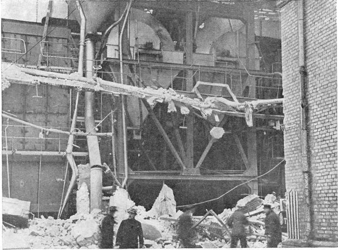 Keywords: 1945-01-05 Tuborg 2.jpg Den nedstyrtede Østvæg i Kedelhuset Scanned from Bombeattentatet paa Tuborg 1945-01-05 Unindentified PD-old Tuborg Attentatet
