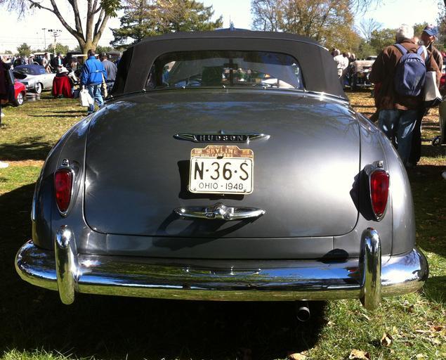 | Keywords: 1948 Hudson convertible Hershey 2012 b.jpg en 1948 Hudson Commodore convertible Rear end view One of the first post World War II cars to the marketplace the 1948 model year inaugurated Hudson's trademarked Monobuilt construction or step-down automobile source http //www oldcarbrochures org/index php/NA/Hudson/1948_Hudson/1948_Hudson_Brochure/1948-Hudson-05 Picture taken on the show field of the Antique Automobile Club of America AACA 2012 Hershey meet that is held every October in Pennsylvania 2012-10-13 13 45 48 own CZmarlin ” Christopher Ziemnowicz releases all rights but a photo credit would be appreciated if this image is used anywhere other than Wikipedia Please leave a note at Wikipedia http //en wikipedia org/w/index php title User_talk CZmarlin action edit section new here Thank you thumb left Right front side view thumb center Interior of this car thumb left Engine bay in this car cc-zero 1948 Hudson automobiles Silver convertibles Hudson Commodore Uploaded with UploadWizard Rear views of automobiles License plates of Ohio |