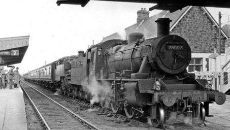 | Keywords: blackandwhite monochrome locomotive vehicle train steam engine outdoor railroad black and white A double-headed return holiday express at Barmouth, 1962. The Pwllheli to Birmingham (Snow Hill) is head by BR Standard 2MT 2-6-0 No. 78007 piloting BR Standard 3MT 2-6-2T No. 82033. Attribution: Ben Brooksbank A double-headed return holiday express at Barmouth, 1962. The Pwllheli to Birmingham (Snow Hill) is head by BR Standard 2MT 2-6-0 No. 78007 piloting BR Standard 3MT 2-6-2T No. 82033. Attribution: Ben Brooksbank |