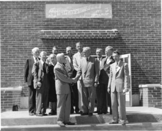 | Keywords: blackandwhite monochrome black and white 2014-0896m Description: "A ministerial group, and Kruses from Germany"; J. N. Smucker, front center on lower step, shaking hands with ?, at General Conference sessions Date: 1950 Location: Freeman, South Dakota MLA filing: Conferences - GC - 1950 Original Size: 19.5 x 24 cm 2014-0896m Description: "A ministerial group, and Kruses from Germany"; J. N. Smucker, front center on lower step, shaking hands with ?, at General Conference sessions Date: 1950 Location: Freeman, South Dakota MLA filing: Conferences - GC - 1950 Original Size: 19.5 x 24 cm |