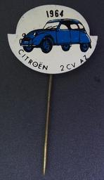 Keywords: 1964 Citroën 2CV speldje.JPG Reclame speltje van een oud Nederlands product Advertising pin of an old Dutch product or brand own 2016-12-10 16 59 53 Alf van Beem Trademarked Advertising pins of car manufacturers