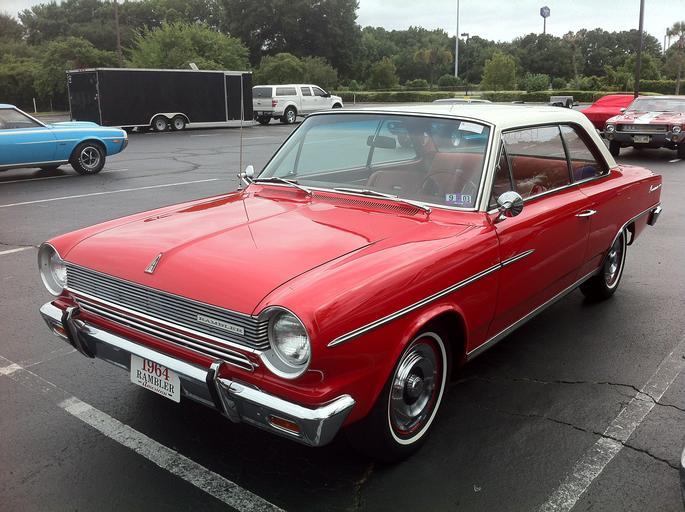 | Keywords: 1964 Rambler American 440-H hardtop 2014-AMO-NC-a.jpg en 1964 Rambler American 440-H a sporty two-door hardtop no B-pillar manufactured by American Motors Corporation AMC and finished in red with a white roof This was the top of the line model with standard bucket seats and this model features AMC's innovative Twin-Stick center console mounted manual transmission Photographed at the 2014 American Motors Owners AMO convention that was held in North Charleston North Carolina USA 2014-08-01 18 16 17 own CZmarlin ” Christopher Ziemnowicz releases all rights but a photo credit would be appreciated if this image is used anywhere other than Wikipedia Please leave a note at Wikipedia http //en wikipedia org/w/index php title User_talk CZmarlin action edit section new here Thank you thumb left thumb center thumb left 32 871833333333 -80 009 cc-zero Uploaded with UploadWizard Rambler American third generation 1964 AMC automobiles Red coupes |