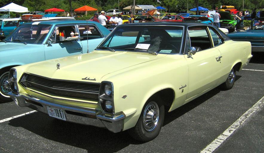 | Keywords: 1967 AMC Ambassador 880 2-door sedan yellow AnnMD-l.jpg en 1967 Ambassador 880 two-door sedan the only year it was offered - with B-post built by American Motors Corporation AMC This car is finished in two-tone paint yellow with black accented roof with standard black interior Picture was taken at the 2011 Potomac Ramblers Club meeting in Maryland 2011-07-16 own CZmarlin ” Christopher Ziemnowicz releases all rights but a photo credit would be appreciated if this image is used anywhere other than Wikipedia Please leave a note at Wikipedia http //en wikipedia org/w/index php title User_talk CZmarlin action edit section new here Thank you en I the copyright holder of this work hereby release it into the public domain This applies worldwide thumb left Head on view thumb center Left side view from rear thumb left Standard interior driver's cockpit steering wheel instruments and dashboard thumb center Side windows and the fixed B-pillar thumb left Vertical cathedral taillamp design cc-zero AMC Ambassador Uploaded with UploadWizard 1967 AMC automobiles Yellow coupes Automobiles facing left |