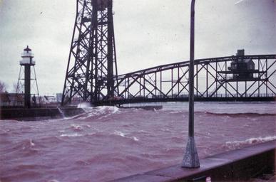 | Keywords: 1967 Duluth Storm DVIDS1091039.jpg en Duluth Minnesota April 30 1967 is a day many Minnesota residents refer to as 'Black Sunday ' A storm passed through the area causing waves as high as 20 feet on Lake Superior here with winds gusting up to 45 mph across the 36-degree water The Coast Guard rescue team of Culbertson Callahan and Prei were dispatched during the storm to search for three brothers who had been reported missing Eric Arthur and Nathan Halverson had last been seen on the North Pier break wall of the Duluth Harbor entry The Coast Guardsmen tied themselves together spaced 25 feet apart and struggled to the end of the pier but were unable to reach the boys before they were swept over the side As they traversed back across the pier a large wave crashed into the team and swept Culbertson over the side taking his life 1967 U S Coast Guard Photo for release by Fireman Ronald Prei / via PS1 Kevin Rofidal MSU Duluth 2009-04-23 https //www dvidshub net/image/1091039 1091039 2013-12-12 01 12 DULUTH MN US PD-USGov Lake Superior Images from DoD uploaded by Fæ |