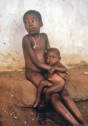 | Keywords: 1968 5Nigeria CDC.png en This photograph showed two malnourished Nigerian children that were being cared for in a refugee relief camp in the late 1960s during the Nigerian-Biafran civil war The CDC helped to treat the 500 000 cases of malnutrition by setting up food distribution centers and clinics in refugee relief camps surrounding the Nigerian war zone Protein enriched foods such as dried codfish and powdered milk were made available to the children suffering with the protein-calorie malnutrition disease called kwashiorkor 1968 CDC http //phil cdc gov/phil/details asp CDC/ Dr Lyle Conrad other versions PD-USGov Uploaded with UploadWizard Nigeria in the 1960s Famines in Africa Images from the CDC Public Health Image Library |