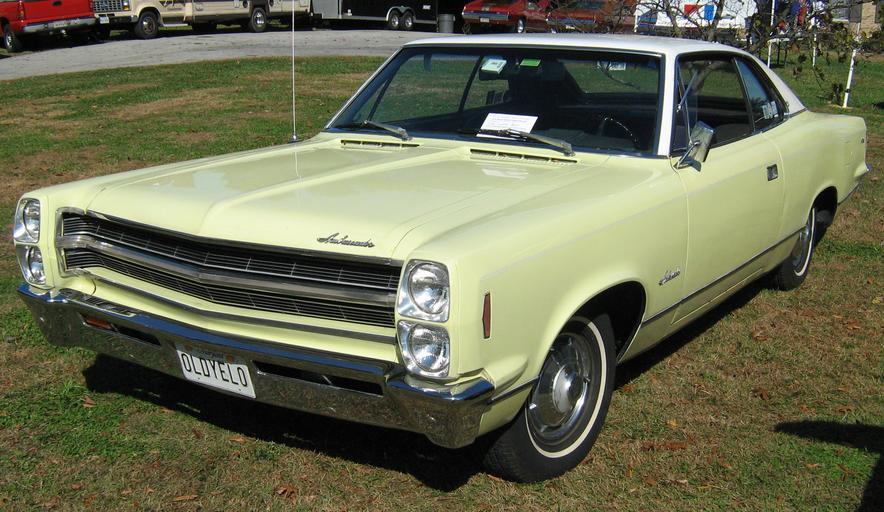 | Keywords: 1968 AMC Ambassador yellow 2-door.jpg 1968 Ambassador made by American Motors Corporation AMC A two-door hardtop with 343 CID 5 6 L V8 engine and automatic transmission This car is finished in Hialeah Yellow paint code P58A with two-tone roof paint Frost White - P58A Note the outside rear view mirror on this car is not factory original but an aftermarket replacement The lower body side moulding is not original but is similar in appearance to the factory trim for this model and year This vehicle also has visible collision damage with the right side of the front bumper along with the right side headlamp assembly pushed several inches into the right fender own 2008-10-26 CZmarlin ” Christopher Ziemnowicz releases all rights but a photo credit would be appreciated if this image is used anywhere other than Wikipedia Please leave a note at Wikipedia http //en wikipedia org/w/index php title User_talk CZmarlin action edit section new here Thank you AMC Ambassador Yellow coupes |