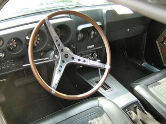 | Keywords: 1968 AMC AMX yellow 390 auto md-id.jpg en Interior driver's side in a 1968 AMX a two-seat GT sport coupe made by American Motors Corporation AMC Finished in yellow with black stripes and all black interior This car has the 390 Go Package that included the 390 cu in 6 4 L 315 hp 235 kW V8 engine racing stripes power front disk brakes Twin-Grip rear differential Magnum 500 chrome wheels and many other high-performance components This car has the optional automatic transmission Rally Pac instruments and dual side exhaust pipes own 2010-09-25 CZmarlin ” Christopher Ziemnowicz releases all rights but a photo credit would be appreciated if this image is used anywhere other than Wikipedia Please leave a note at Wikipedia http //en wikipedia org/w/index php title User_talk CZmarlin action edit section new here Thank you thumb left Right side profile view thumb center Rear view thumb left Optional dual side pipes thumb center 390 emblem on rear side thumb left Detail of the AMX badge thumb center Engine emissions sticker thumb left The 390 AMX engine from right side thumb center The 390 AMX engine from left side thumb left Rear side view thumb center Interior dashboard and center console thumb left Go package over the top stripes thumb upright center Corporate logo mounted below rear window AMC AMX AMC interiors Automobile cockpits Gear sticks automatic transmission |