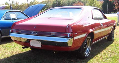 | Keywords: 1969 Javelin SST red w white C-stripe rr.jpg 1969 Javelin SST model by American Motors AMC - a pony car This two-door hardtop is finished in Matador Red paint code P39 with the optional C stripe in white This car also has the Magnum styled steel wheels own uploaded on 2009-09-11 CZmarlin ” Christopher Ziemnowicz releases all rights but a photo credit would be appreciated if this image is used anywhere other than Wikipedia Please leave a note at Wikipedia http //en wikipedia org/w/index php title User_talk CZmarlin action edit section new here Thank you thumb left Front left view of this Javelin thumb center The interior and dashboard in this car thumb left Front right rear view of this Javelin AMC Javelin 1969 AMC automobiles Red coupes |