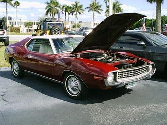| Keywords: 1972 AMC Javelin SST burgundy FLfr.jpg 1972 Javelin SST coupe - front view - built by American Motors Corporation AMC a pony car finished in Sparkling Burgundy paint code D8 and equipped with AMC's 360 CID 5 9 L 2-barrel V8 engine in original driver condition own 2010-03-07 CZmarlin ” Christopher Ziemnowicz releases all rights but a photo credit would be appreciated if this image is used anywhere other than Wikipedia Please leave a note at Wikipedia http //en wikipedia org/w/index php title User_talk CZmarlin action edit section new here Thank you I the copyright holder of this work hereby release it into the public domain This applies worldwide thumb left The rear end of a 1972 Javelin SST thumb center Rear view of the 1972 AMC Javelin thumb left Standard instrument panel thumb center Head on view of a 1972 Javelin thumb left Standard interior in SST Javelins thumb center Unrestored AMC's 360 CID engine in this 1972 Javelin thumb left Detail of the Javelin's roof with spoiler -like shape at the rear and the twin canopy vinyl roof cover AMC Javelin 1972 AMC automobiles |