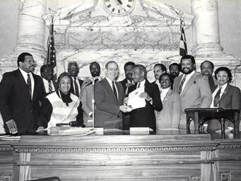 | Keywords: 1980s md black caucus.JPG en maryland black caucus honoring parren mitchel own Marylandstater 1987-01-21 Cc-zero State political office-holders in the United States Members of the Maryland House of Delegates State legislatures of the United States Government of Maryland 1987 in Maryland |