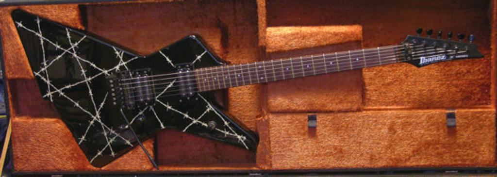 Keywords: 1985 Ibanez Electric Guitar Destroyer Model DT380 BarbedWire.JPG en 1985 Ibanez Destroyer Model DT-380 Barbed Wire own TheDestroyerGuy 2008-08-16 Electric guitars Ibanez Destroyer
